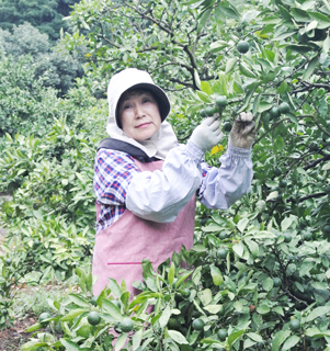岡 千鶴子さんに話をお聞きしました。 今夏の暑さは格別だが、今の時期は、ミカンの摘花作業の真...