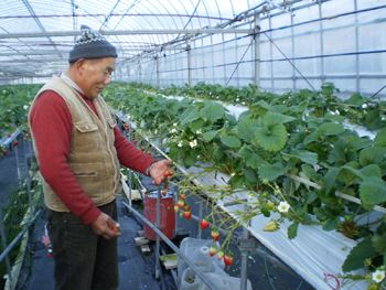 大規模なビニールハウスでいちごを栽培しております。 ハウス内に入ると、甘い香りに包まれ、見事...