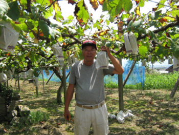土成町の故三木武夫元総理大臣の銅像からほど近い場所にある牧本さんのぶどう畑。甘...